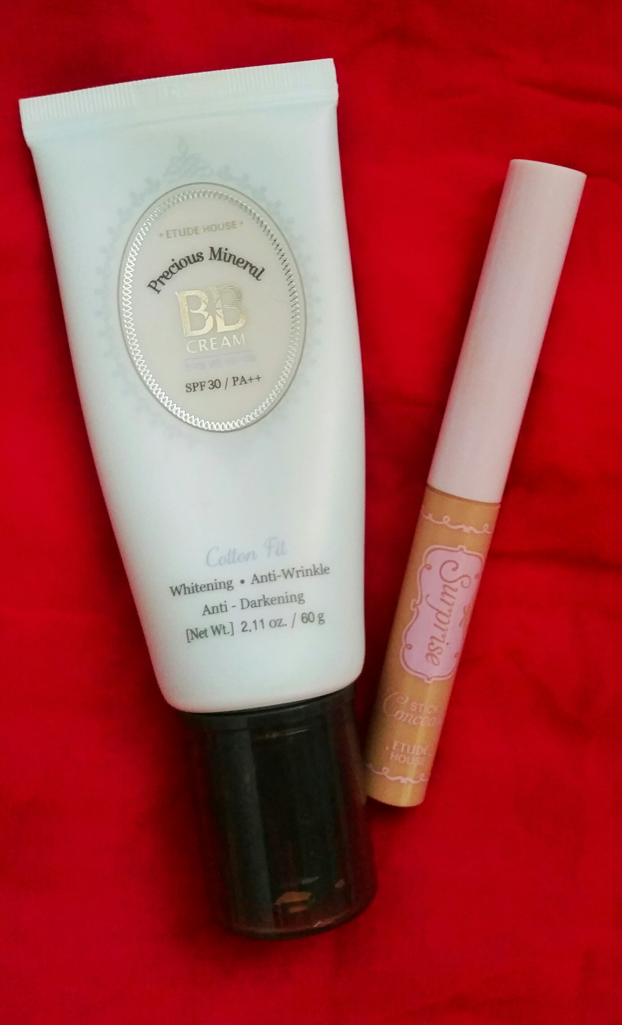 I’m using Etude House Cotton Fit BB cream right now for the matte look but also liked the Bright Fit & Perfect Fit. To cover those unwanted spots, I use the Surprise Stick concealer. I would recommend the liquid concealer to cover those dark circles.