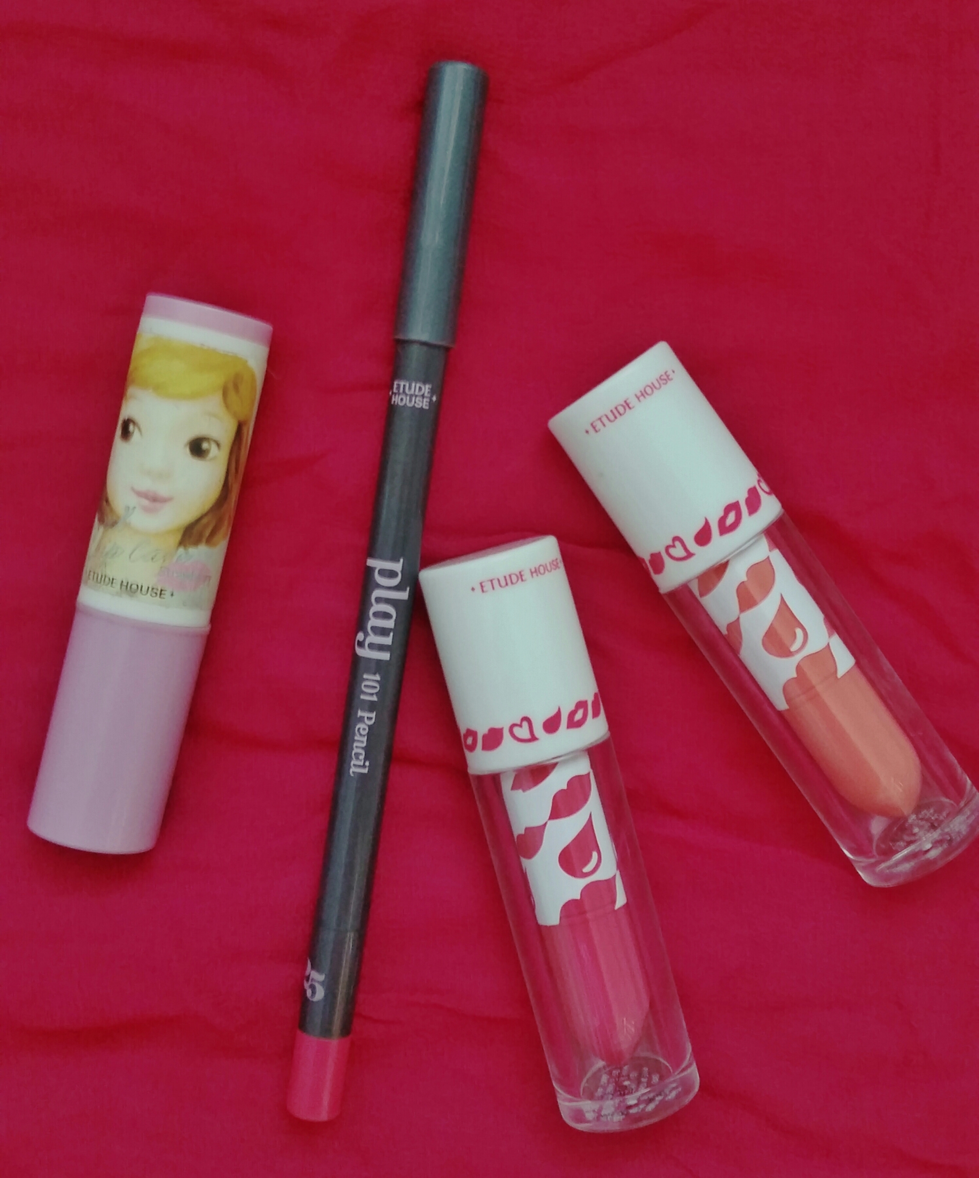 I place some blush on using the Water Color Blusher (no.1 Strawberry Pink), put on lip balm since my lips usually chaps off and finish it off with what I feel like putting on that certain day. I love this Play101 pen (#25), and these new lip gloss products from Etude House, Color in Liquid Lips (Pk006 Always in Pink and Or201 Juicy in Juice)!