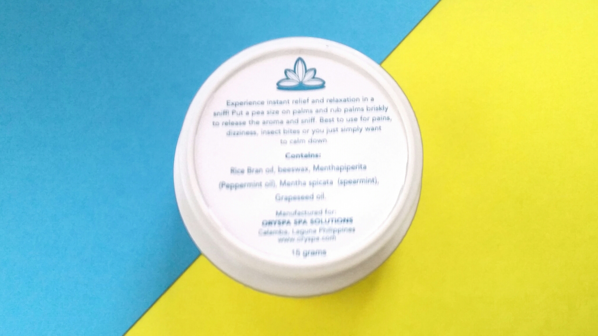 This Oryspa Rice Bran Sniff Balm is a favorite of mine. It was recommended by a close friend last November and this one is my second balm. I just get a little amount, rub my fingers together then apply it on my temples while massaging them. It has a cool, minty effect that just relaxes me. It effectively destresses me also.