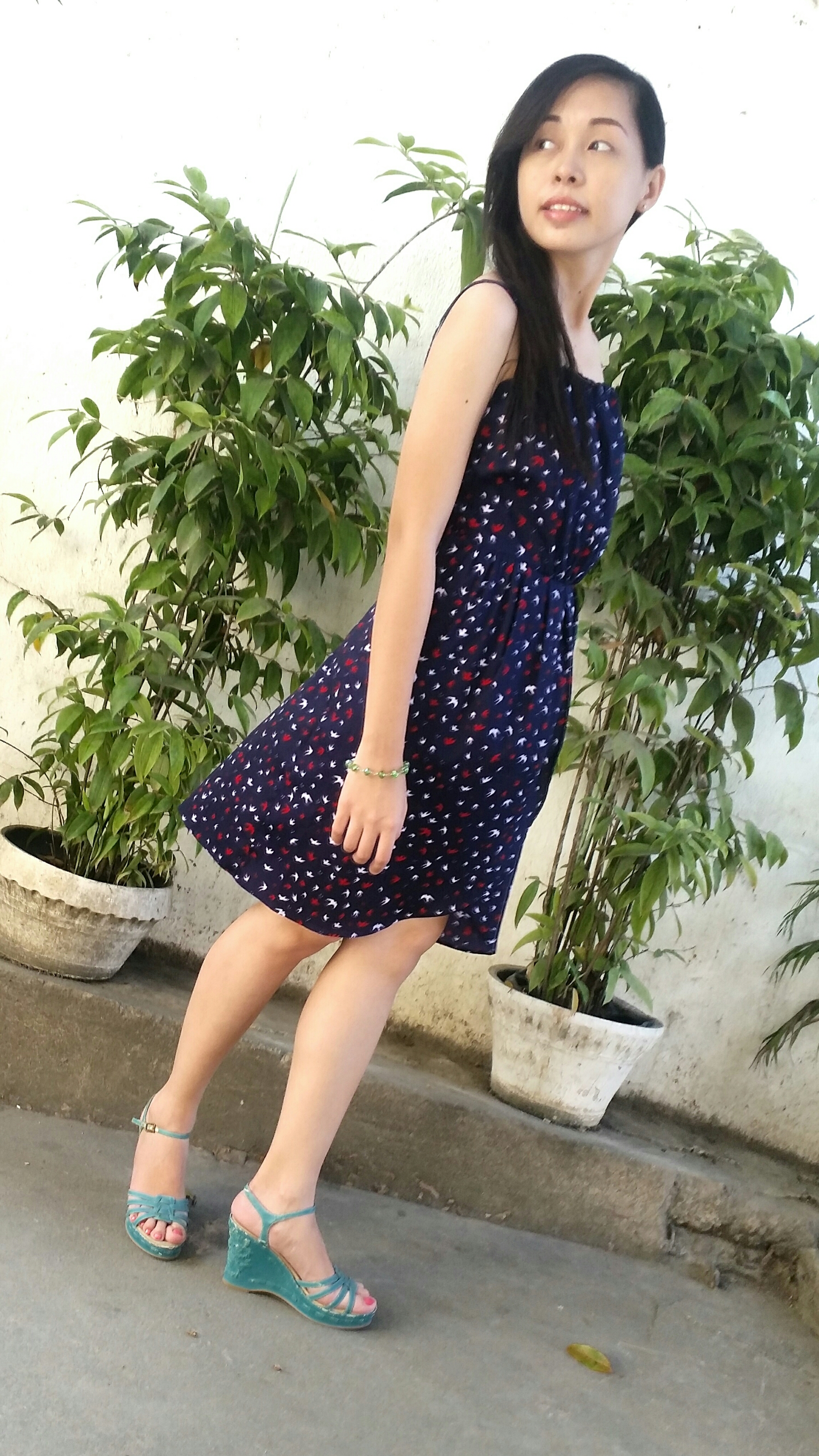 I totally love this blue bird dress! This makes me feel free like the birds on the dress. Kidding aside, this is very light, perfect for this season! To make the dress stand out, I just accessorized minimally and finished the outfit with these aquamarine wedges.