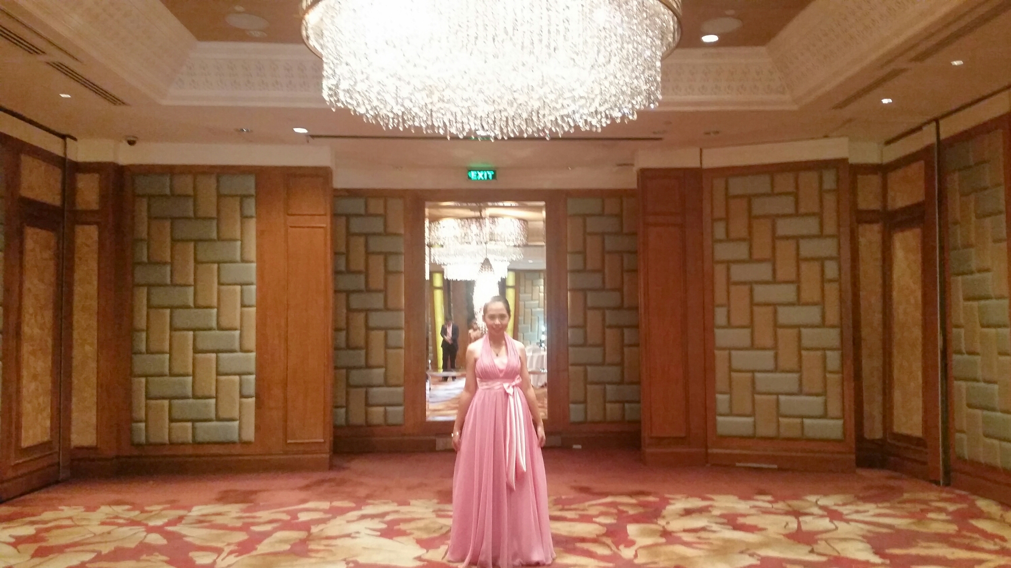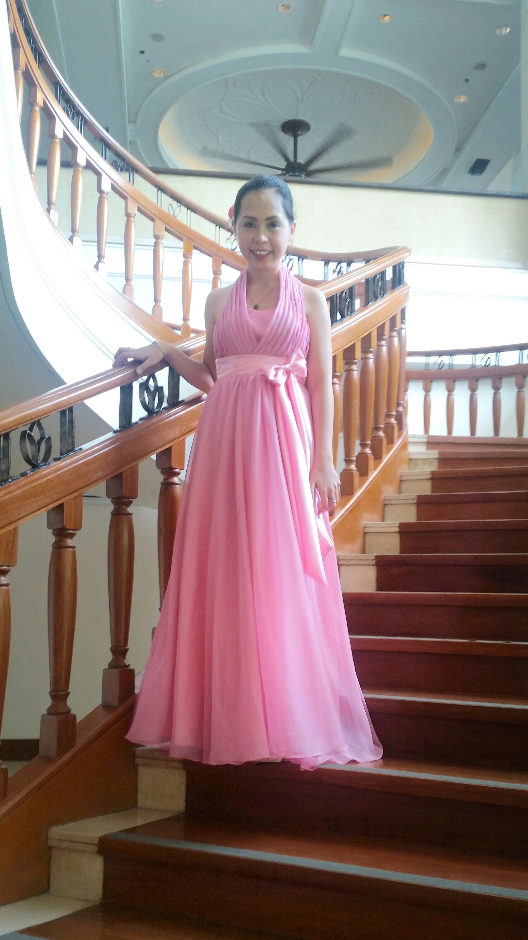 As a part of her entourage, we were to wear different shades of pink. She has chosen this Dusty rose long halter gown for me. At first, I didn’t think this color would look good on me but to my surprise, everyone complimented me that day. I have actually learned to love this gown on me. The fabric was made of charmeuse and layered with chiffon. I wore a pair of gold platforms with this so I could last hours of standing and dancing. I also just accessorized minimally to let the dress stand out on its own.