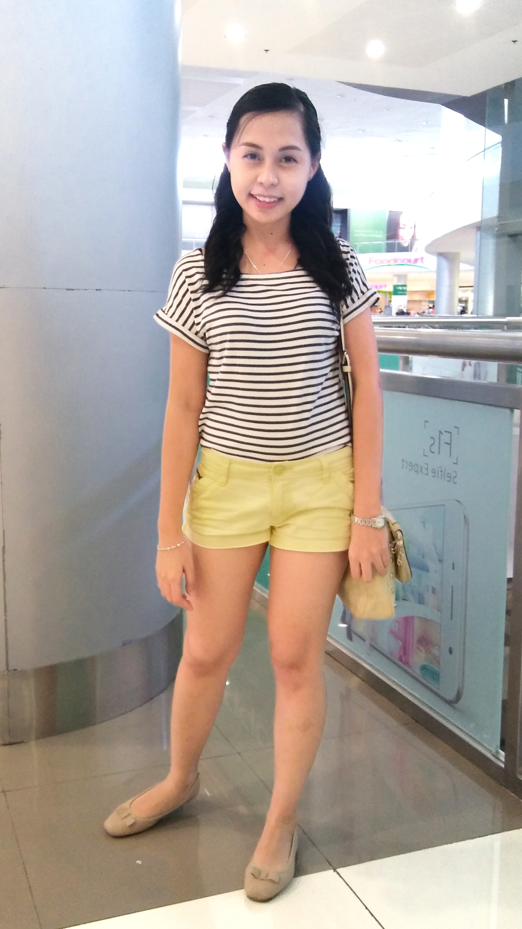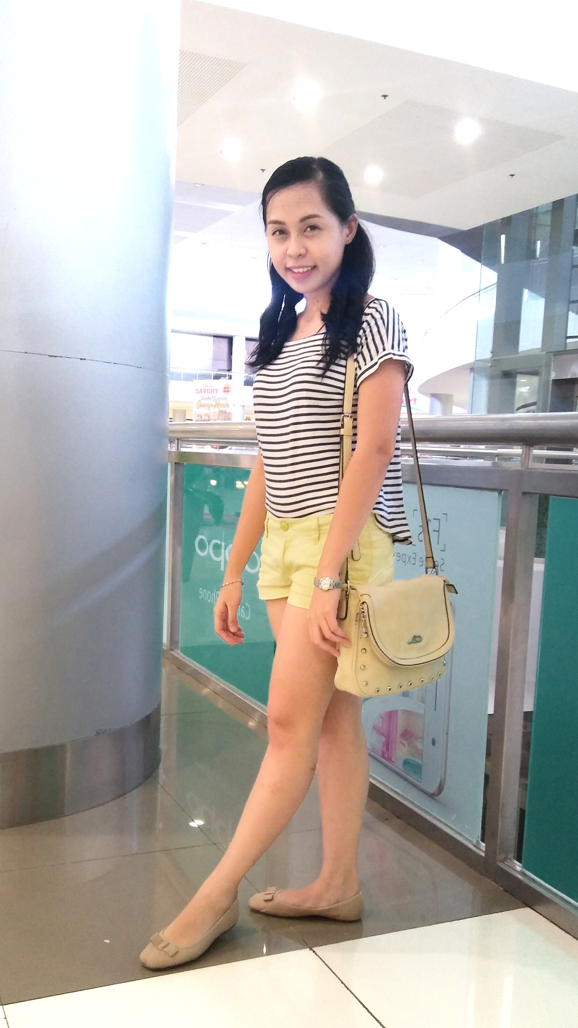 For a day out with my sisters for some shopping, I wore this white and blue striped tee. The stripe style lean more on the nautical side which is something wearable for Summer too. I paired this tee with pastel yellow shorts, a color that I’ve been in love with ever since Spring started. I also brought this Lord’s shoulder bag, a current fave of mine, with me. Finished everything up with a pair of ballet flats since I’m going shopping and I want to be walking comfortably.