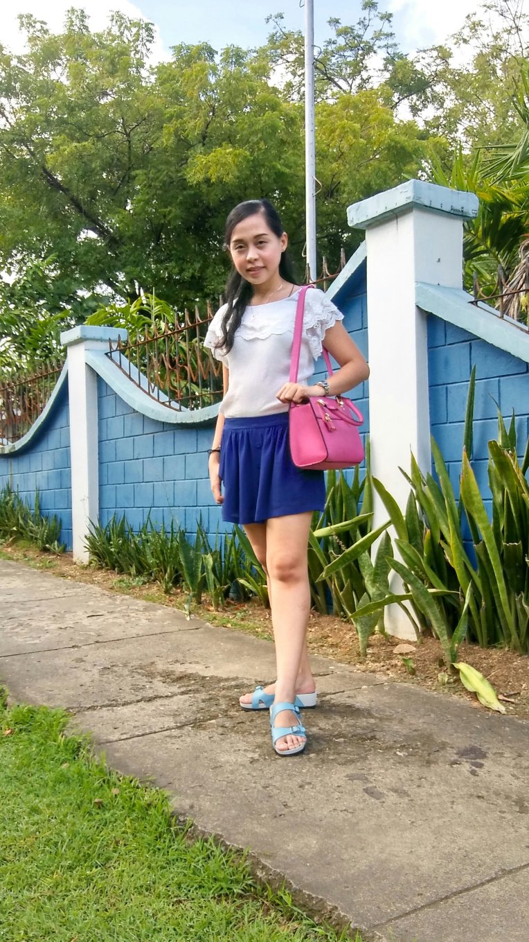 Last week, I went out for a walk and some brunch with my sister matching two pieces in different bold colors I usually wear but never pair. I wore this laced white blouse paired with this royal blue skirt. In contrast to blue, I opted to bring my current favorite bag, this fuchsia pink shoulder bag from Aldo. I actually didn’t hate it. Well, the white blouse was able to balance everything out. Also, since I wanted to just relax, I opted to wear some sandals to finish everything off.