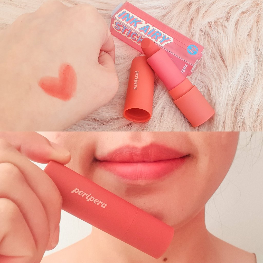 The Peripera Ink Airy Stick is a creamy lipstick that offers a weightless, powdery matte finish free of clumps and fine lines.