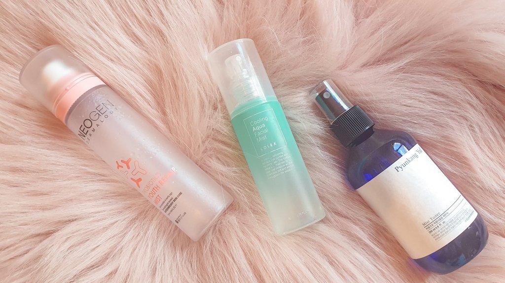 The 3 facial mists that I have been using now and again are the Neogen Dermalogy Probiotics Youth Repair Mist, the COSRX Cooling Aqua Facial Mist and the Pyunkang Yul Mist Toner.