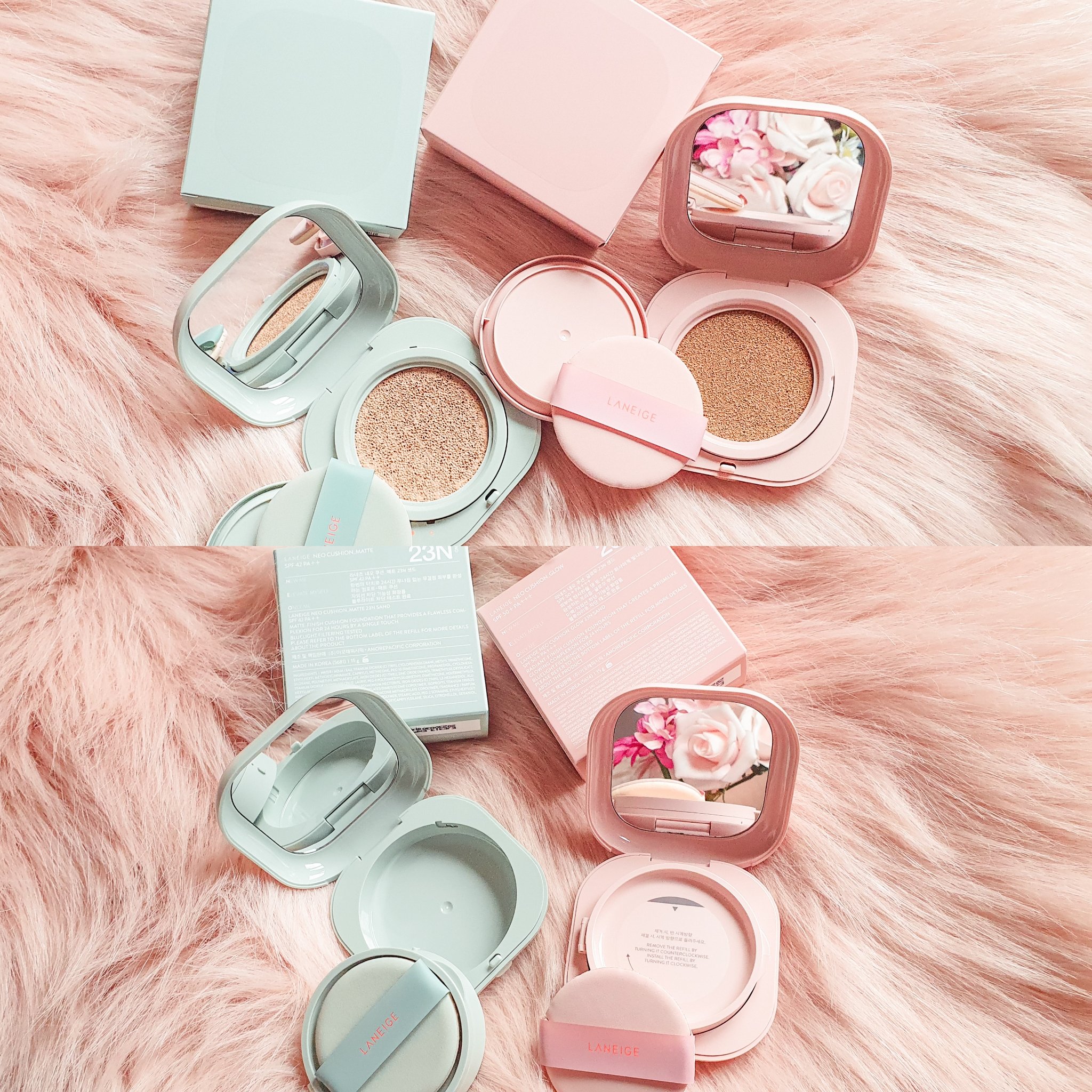 Volume: Each cushion consist of 15g of product. The Laneige Neo Cushion Matte is in a pastel green container while The Laneige Neo Cushion Glow is in a pastel pink compact (both so cute!). Both are refillable, refills sold separately and with special cushion puffs each.