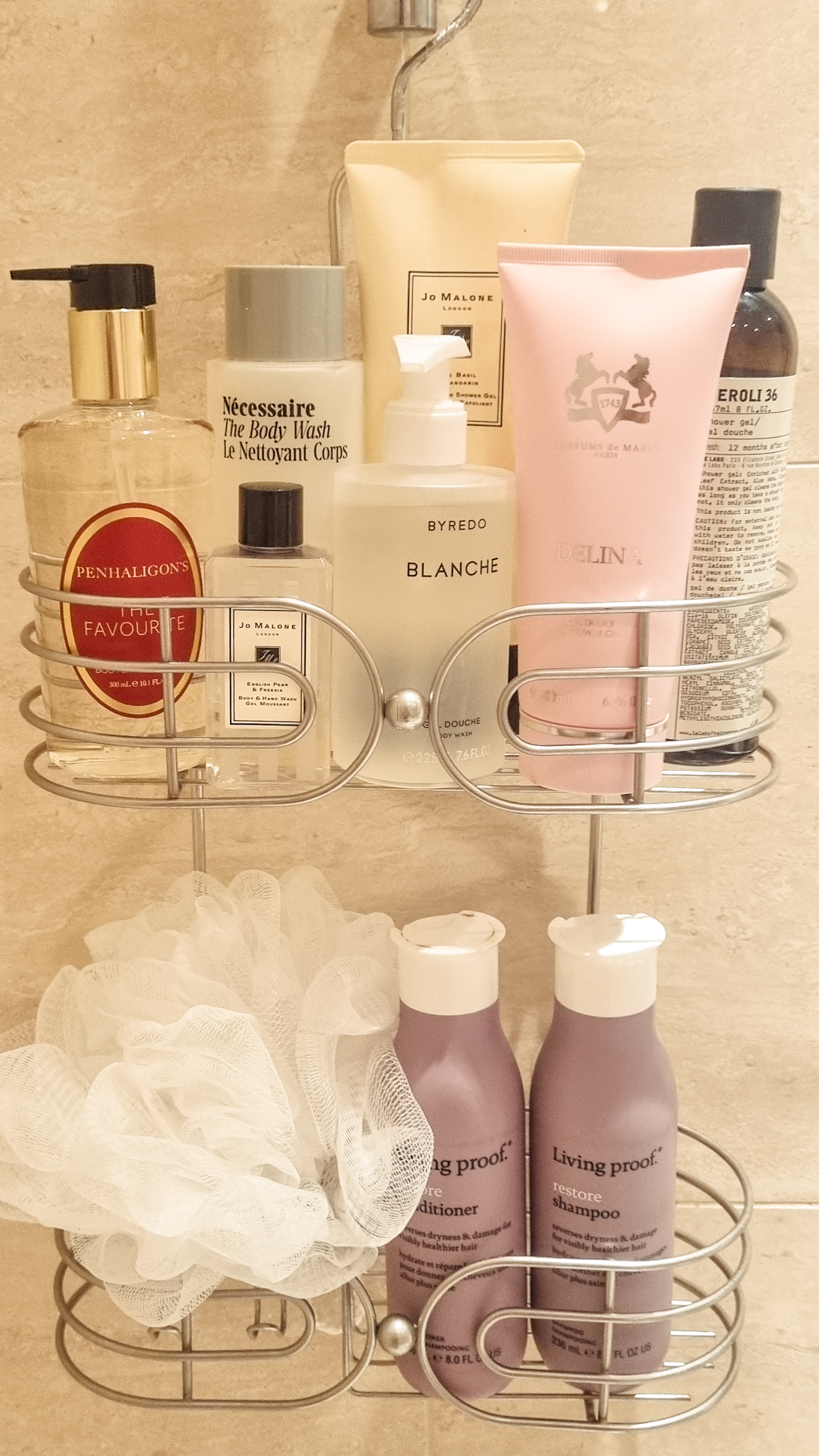 Above is my little shower shelf situation. Lovely, isn’t it?