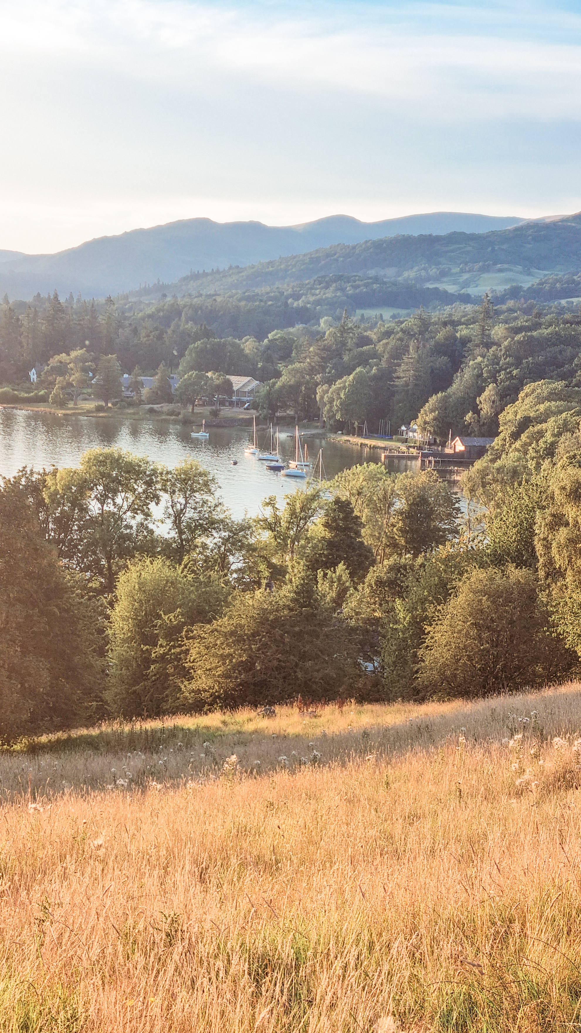Windermere is a large lake in Cumbria’s Lake District National Park. It’s surrounded by mountain peaks and villages, including Bowness‑on‑Windermere. Seeing the sunset over Lake Windermere from one of the mountain peaks was just breathtaking.
